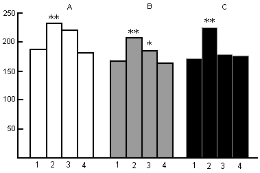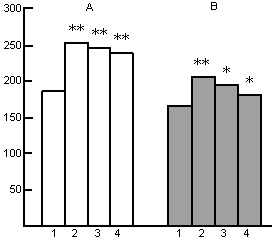 Columns: 1-baseline, 2-, 3- and 4- first, second and third days of postdeprivation period respectively.