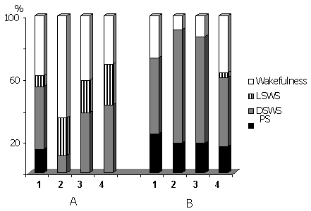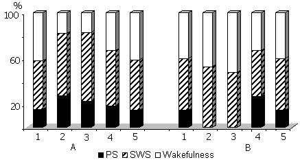 It seems that the findings described in the present study will arouse interest of the investigators concerned with the SWC neurobiology and will be taken into account during further use of the water tank method and other stress techniques (Rechtschaffen et al. 1983) while studying the role of PS in memory organization, as well as the neurochemical processes that underlie the formation of intrinsic need for sleep in general and for its phases in particular.