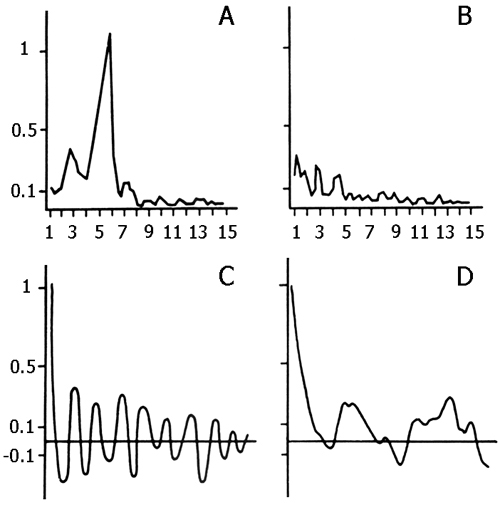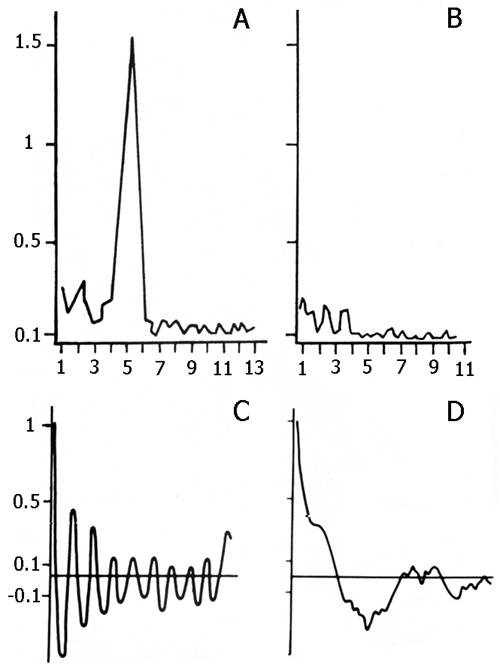 Figure 14.1. Spectral density and corresponding autocorrelograms of hippocampal electrical activity during active wakefulness.