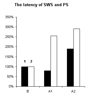 Figure 4. Changes of latency of SWS and PS during of ethanol administration.