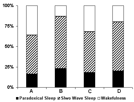 There is a controversy in the literature about the problem of influence of learning processes on the subsequent SWC. Some authors noted an increase of paradoxical sleep after learning session (Fishbein and Gutwein 1977), others, indicate to the absence of any noticeable effect (Oniani and Lortkipanidze 1985). Our results exclude the existanse of a causal relationship between learning processes and postsessional enhancement of paradoxical sleep amount.